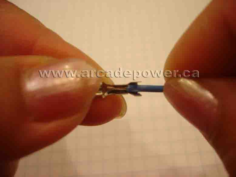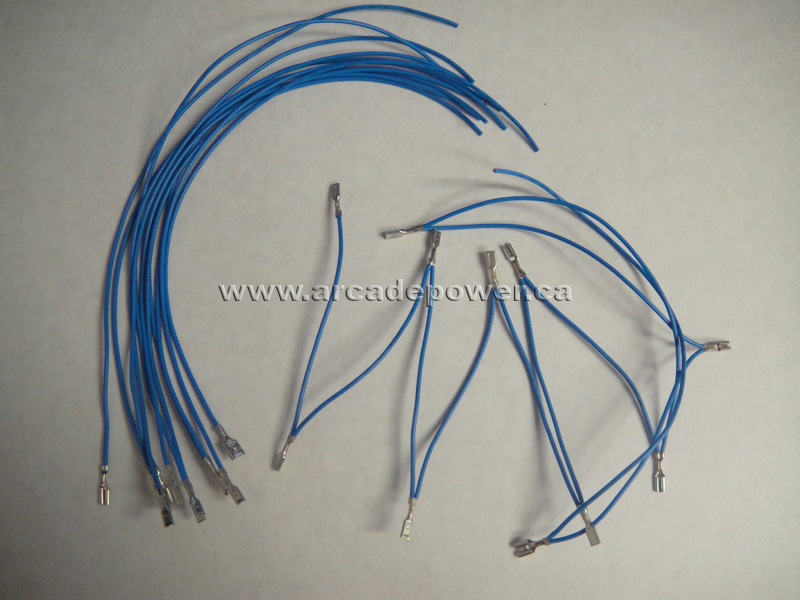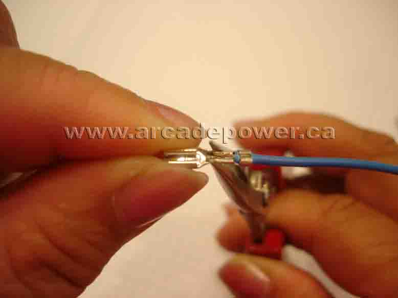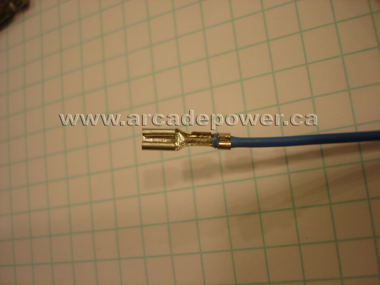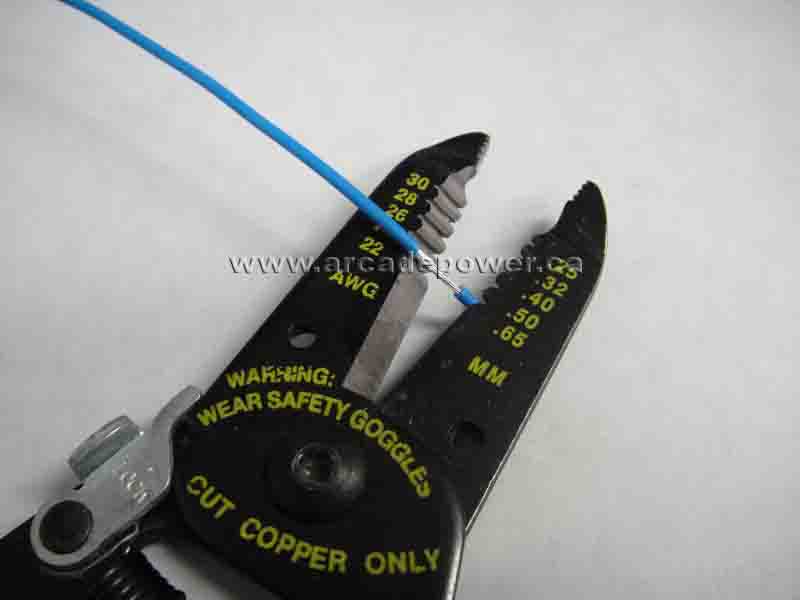You will need to prepare 11 pieces of 11" AWG-22 wires for the buttons. Clip off both ends of the wires and attach the .110 quick connects on one end of the wires with your long-nose plier.
