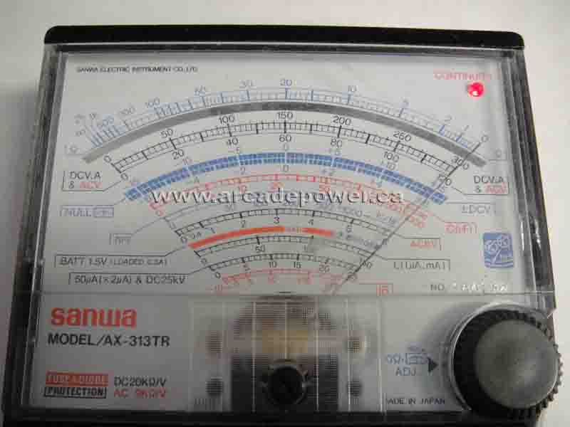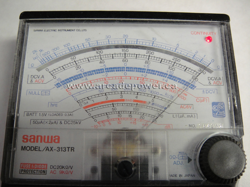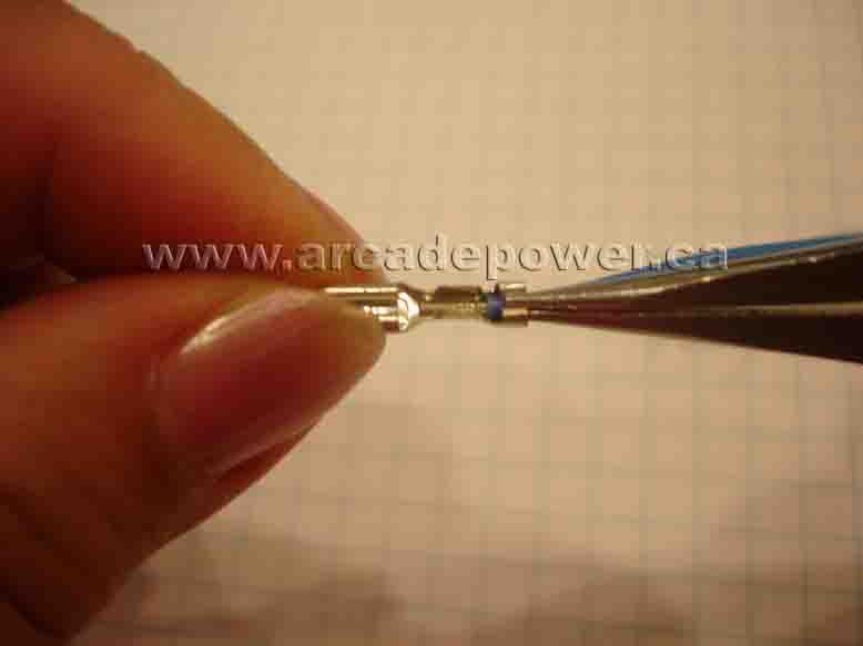 We will now use the multimeter to see if the quick connects are properly attached to the wires. Set the multimeter to X1 OHM section and touch both ends of the wires with the multimeter's probes. If the multimeter indicates that there is zero resistance, then the wire is fine. Otherwise, you need to reattach the quick connects and test again. This is a very important procedure--if you've done this procedure and later find out that the buttons are not functioning, then the wires are not the problem. The problem lies with the Cthulhu board. If you skip this step, you may waste valuable time finding out what the problem is.